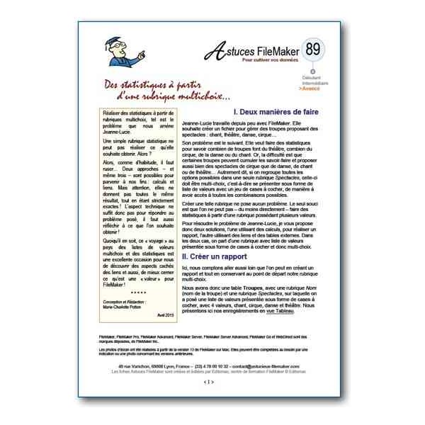 fiches Astuce n°22, 23 et 36 et le cahier pratique Réussir ses recherches dans FileMaker !