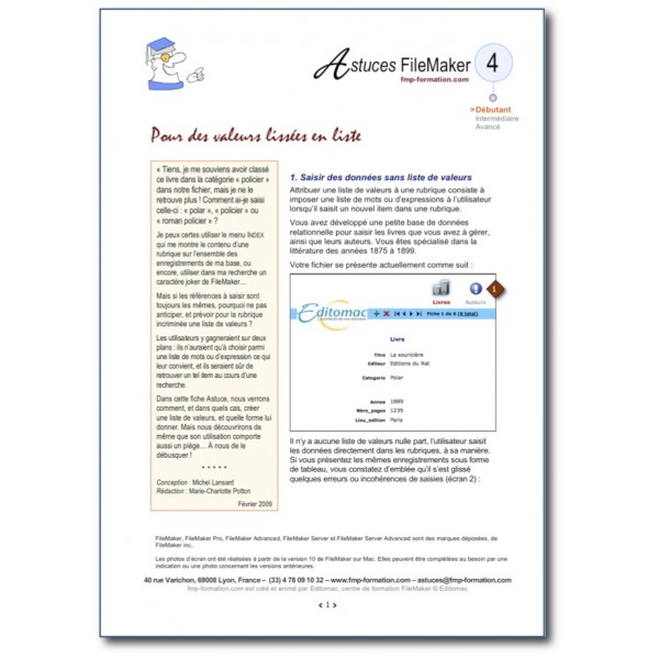 Cette fiche initie un sujet que nous retrouverons ensuite dans plusieurs fiches : les listes de valeurs.