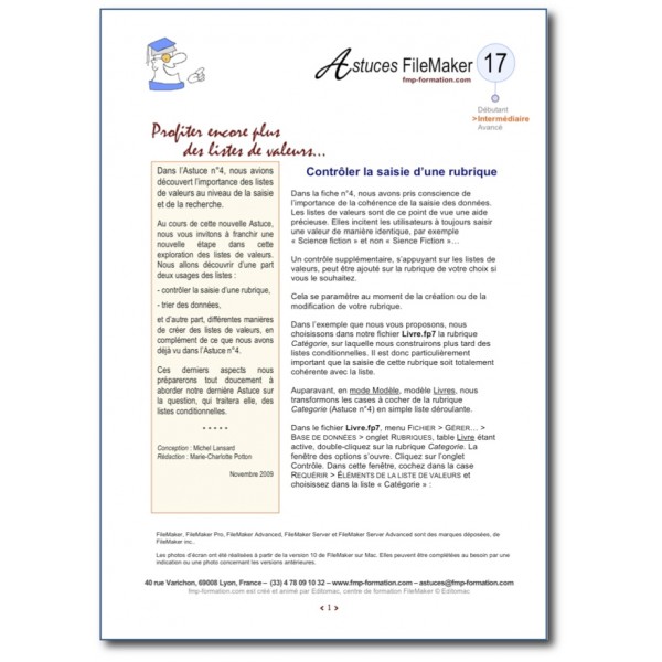 ainsi que différentes manières de créer des listes de valeurs. En prime, deux fichiers accompagnent cette Astuce.