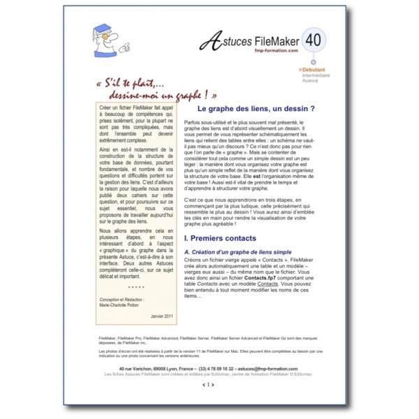 Cette fiche fait partie d'un Pack thématique sur le graphe de liens. Nous vous conseillons de prendre ce pack, plutôt que telle ou telle fiche le composant (40, 41, 42 et 43). Elle appartient également au Pack thématique Maîtriser les liens dans FileMaker, qui comprend, outre ces quatre fiches Astuces, la fiche 28 et les deux cahiers sur les Liens.