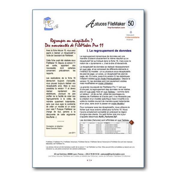 FileMaker Pro 11 propose désormais une nouvelle fonctionnalité pour réaliser des statistiques, grâce au regroupement de données.